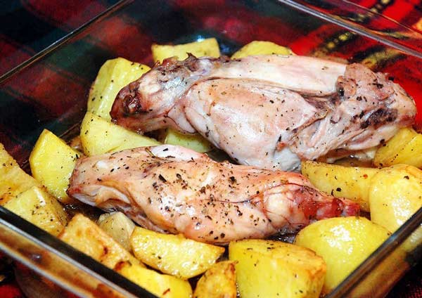 Диетическое мясо кролика прекрасно подходит для запекания. В качестве гарнира можно подать картофель.
