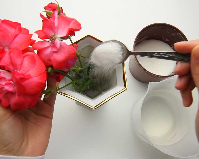 5. Чтобы дополнительно напитать растения, добавь в вазу специальный раствор для срезанных цветов. Приобрести его можно в любом флористическом магазине. Ну а если его под рукой не окажется, смело бери сахарницу – особенно большие сластены нарциссы, гвоздики, тюльпаны. Столовой ложки на вазу среднего объема будет достаточно.