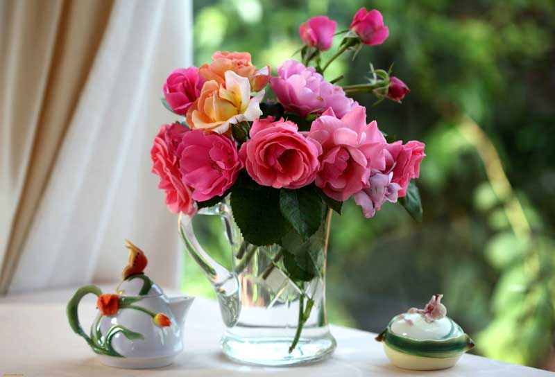 10. Букет лучше всего ставить в светлом помещении, но уберегая от прямых солнечных лучей. Отопительные приборы поблизости и сквозняки так же не пойдут на пользу срезанным цветам. На ночь вазу можно перемещать во влажное и прохладное место. Вообще, при температуре 17-18° С букет останется свежим дольше, чем если будет стоят в помещении при 22°С, к примеру.