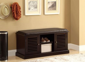 Закрытые тумбы для обуви в прихожую, изготавливают в виде сидячих мест для переобувания или шкафчиков. Это обусловленоэкономией места, ведь не всегда можно найти место для отдельного пуфика или табурета. Достоинство закрытых обувниц в хорошей защищенности от пыли и долгой сохранности обуви. Однако сырая обувь в них сушится долго и может возникнуть неприятный запах. Поэтому при выборе закрытой тумбы для обуви в прихожей, позаботьтесь о наличии вентилируемых отверстий в них.