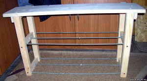 Обувница такой конструкции, благодаря хорошей вентиляции, хорошо подходят для сушки обуви. Такая конструкция может быть самостоятельной , а может крепиться на стойке из ДСП или МДФ.