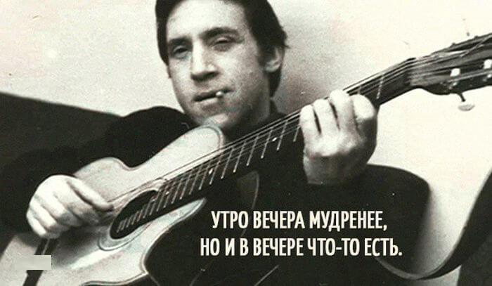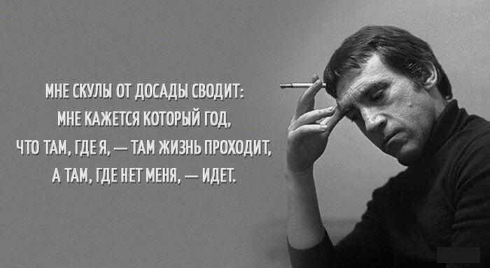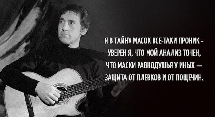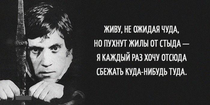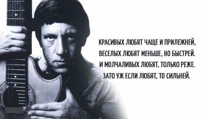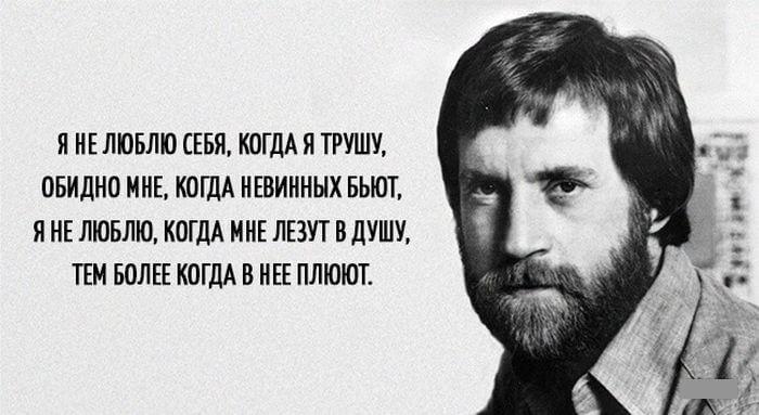 Творчество Владимира Высоцкого наверное близко каждому и в то же время всегда очень лично. Его мир был совсем другим и чтобы понять этот мир нужно глубоко изучить его жизнь и творчество. Он великий исполнитель, талантливый автор и исполнитель, хулиган и нежный романтик. Ниже представлены его меткие и цепляющие выражения.