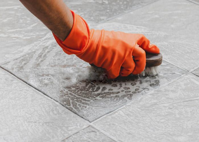 - Очистите плитку и межплиточные швы