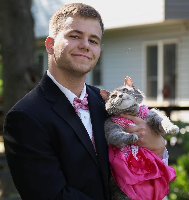 1. «Мой брат взял нашу кошку для фото. Только посмотрите как она смотрит на него»