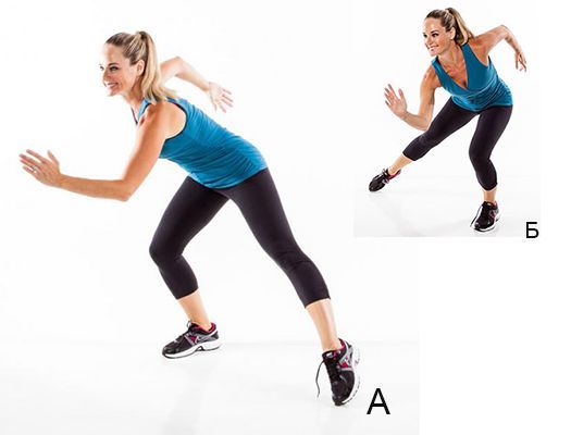 Приземляемся на носочки, как можно быстрее возвращаемся трусцой назад в исходное положение. Повторяем упражнение. Все нужно делать быстро, не отдыхая.