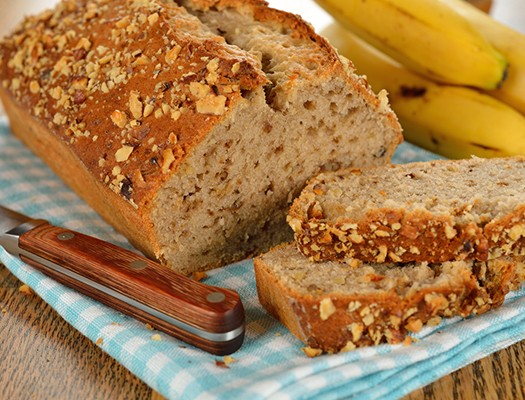 - Миксером смешайте сахар и масло до однородной массы. Добавьте по одному яйца, затем — ванильный экстракт. Добавьте пюре из нута, тыкву и банан. Медлено введите всю муку. Перелейте тесто в форму для кекса, смазанную маслом.