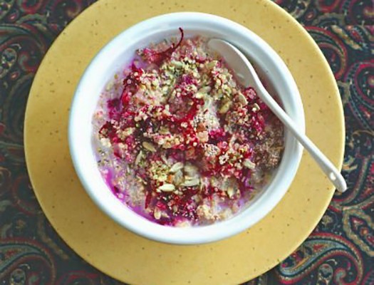 - Подавайте на утро,украсив ягодами или кусочками фруктов, а также семена подсолнечника, орешками или медом.
