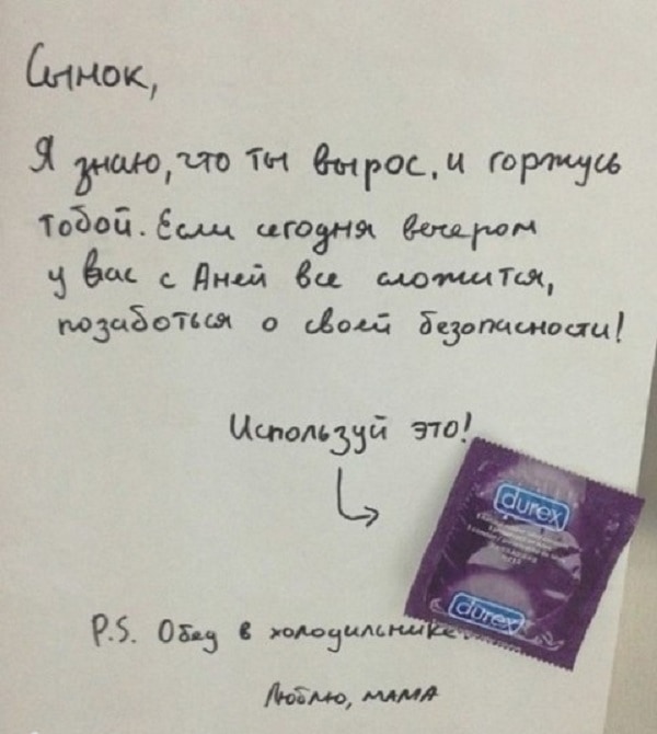 Наверное, каждый в детстве оставался один дома. Утром на столе вас, конечно же, ждала мамина записка. Её содержание было довольно предсказуемым: в основном мама писала, что нужно сделать по дому и где лежит еда. Если родители с чувством юмора, то вас ждёт весёлое и креативное послание. Например, как эти запики из нашей подборки. Приятного просмотра!