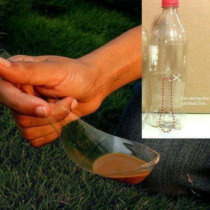 Не стоит огорчаться, если вы забыли столовые приборы. Взгляните на простой способ создания ложки из пластиковой бутылки