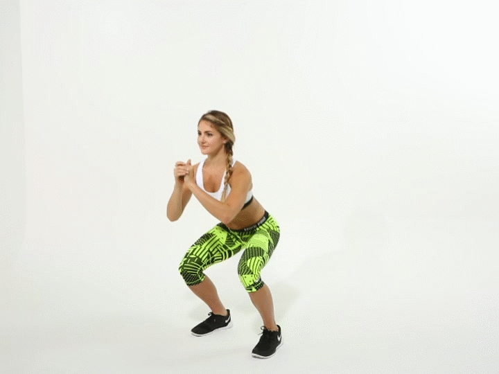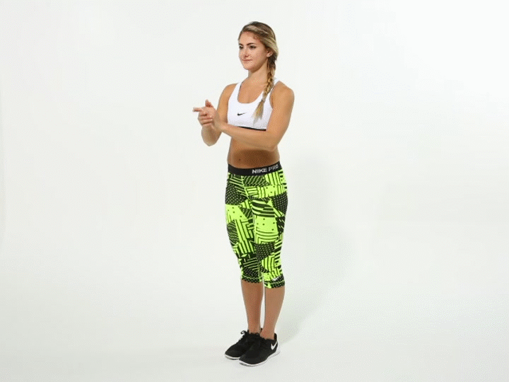 - Приседания и тренировка косых мышц пресса — 20 раз на каждую сторону