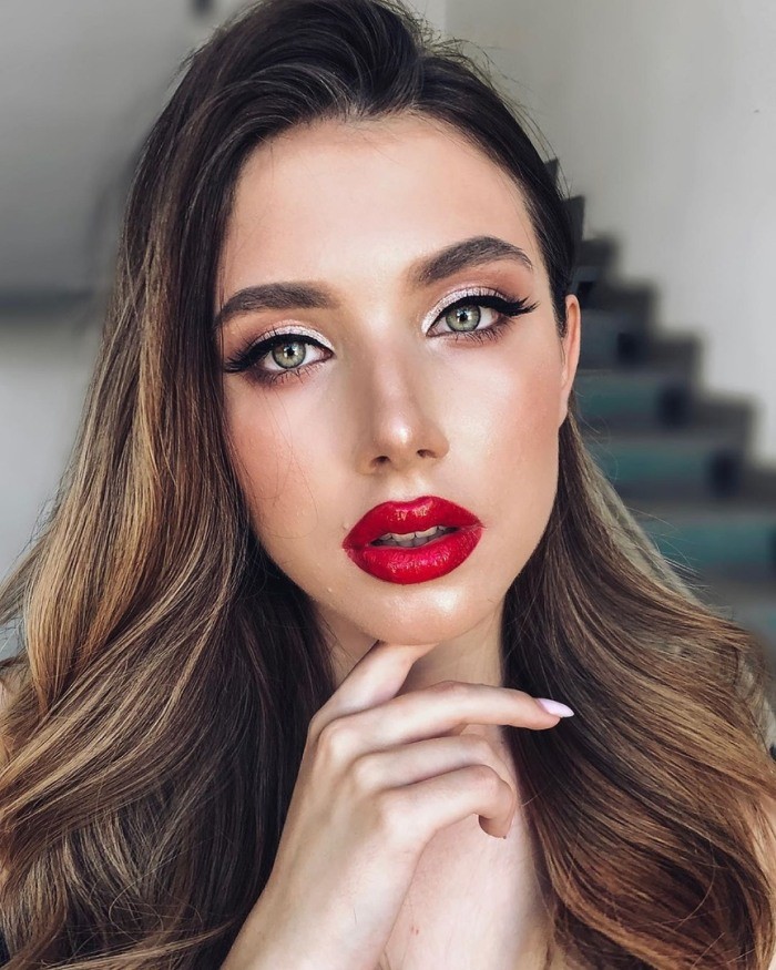 Естественный макияж в этот праздничный день может смотреться немного скучно, но не менее красиво. Если вы приверженец натуральных оттенков – не бойтесь использовать их. Отличным завершающим штрихом такого макияжа будет яркий и страстный контраст на губах.