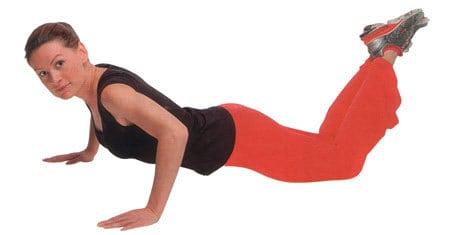 Встаньте на колени и сделайте упор на прямые руки. Ладони поставьте параллельно друг другу, расстояние между ними должно быть намного больше ширины плеч. Сгибая локти, опустите туловище вниз. Следите, чтобы голова, туловище и таз оставались на одной прямой. Выпрямите руки и вернитесь в исходное положение. Повторите упражнение 10—12 раз.