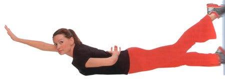 Ложитесь на живот. Правую руку положите на поясницу, а левую вытяните вперед, ноги прямые. Поднимите одновременно левую руку и правую ногу, задержите их в таком положении на 2—3 секунды, медленно опустите. Повторите упражнение 20 раз. Затем поменяйте руки и повторите еще 20 раз. После этого, не отдыхая, поднимите вверх обе руки и ноги, задержитесь в этом положении на 20—30 секунд.