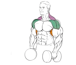 Основное упражнение для проработки плечевых мышц. Главный упор в нем делается на средний пучок дельты. Однако накачивание этого участка происходит при активном участии и переднего, и заднего пучка.