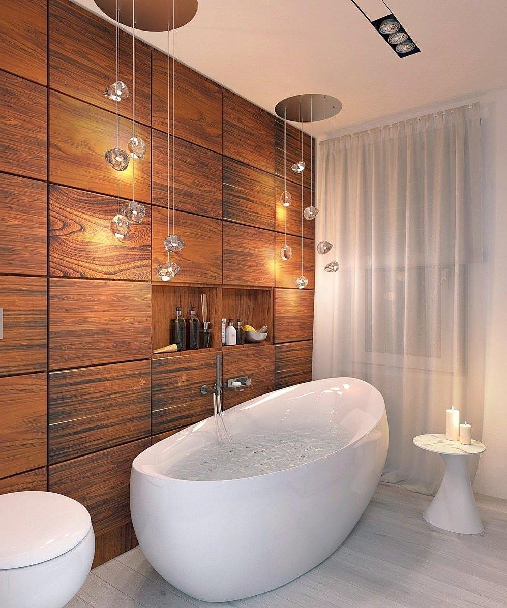 6. Не бойтесь повесить в ванной комнате светильник, достойный гостиной.