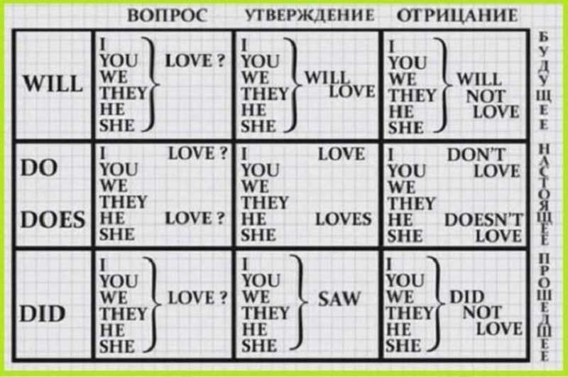Специально для наших любознательных читателей мы подготовили подборку полезных таблиц, которые помогут в освоении азов английского языка. Их можно распечатать и вложить в свою рабочую тетрадь, чтобы наглядные примеры были всегда под рукой.