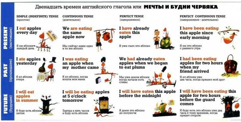 Такая таблица поможет освоить 12 времен английского языка не только детям, но и взрослым.