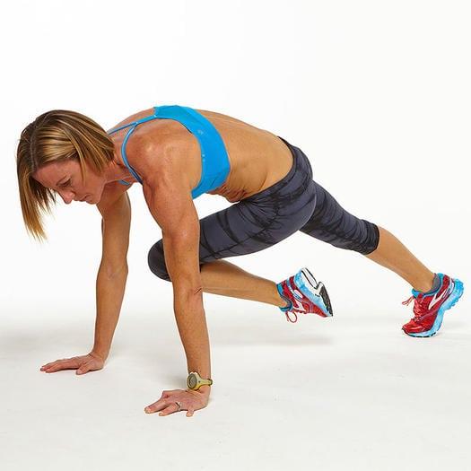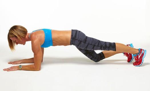 - В положении низкой планки поочерёдно сгибайте колени.