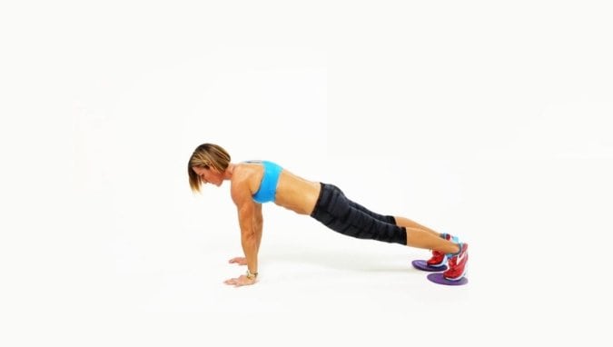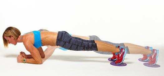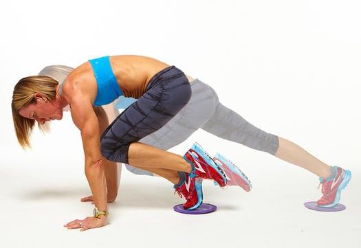 - Встаньте в высокую планку, поставив ноги на что-нибудь скользкое.