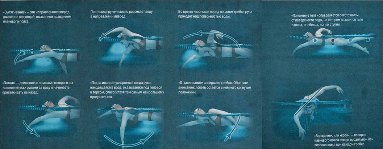 Брасс, спина и баттерфляй аналогично могут быть разложены на такие же движения.