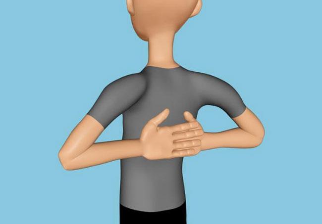 Расположите руки за спиной одна поверх другой. Нажмите на позвоночник так высоко, как позволяют вам ваши руки. Потянитесь назад, продолжая нажимать руками на позвоночник, вы должны добиться некоторого легкого пощелкивания.