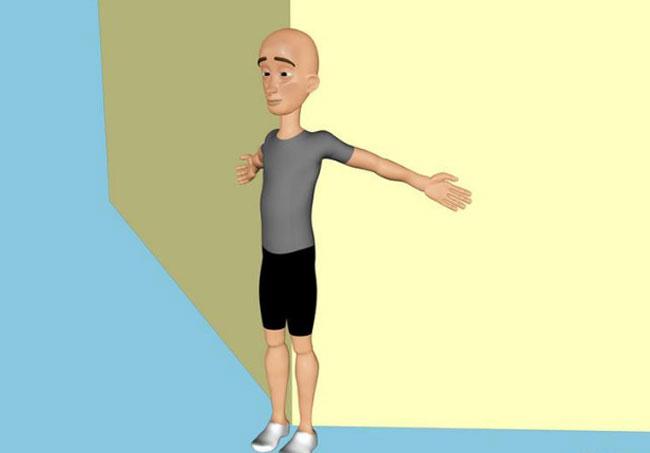 Встаньте ровно, прижавшись спиной к углу стены. Разведите руки в стороны и сдвиньте лопатки. Такое аккуратное потягивание поможет снять напряжение со спины более естественным образом.