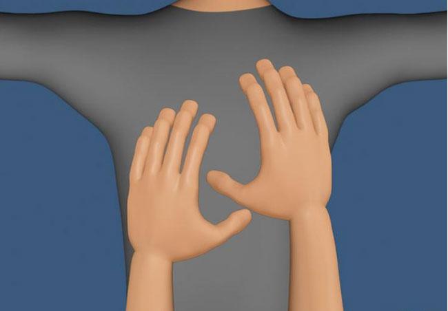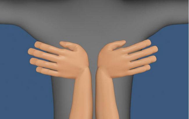 Пусть положит руки так, чтобы они оказались по разные стороны вашего позвоночника. Пальцы должны указывать в противоположные направления. Расстояние между ладонями от 1 до 1,5 дюймов