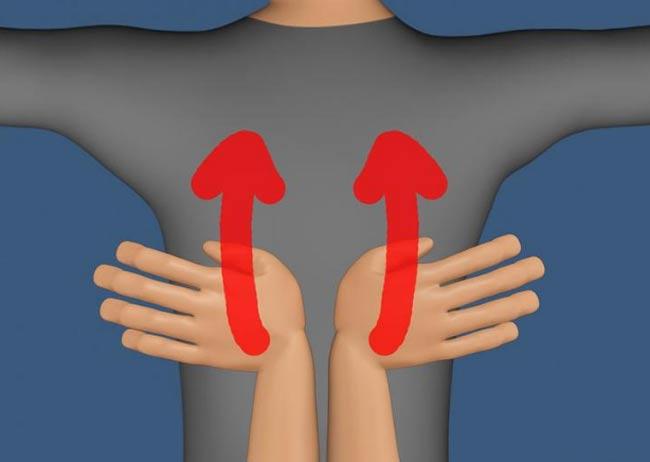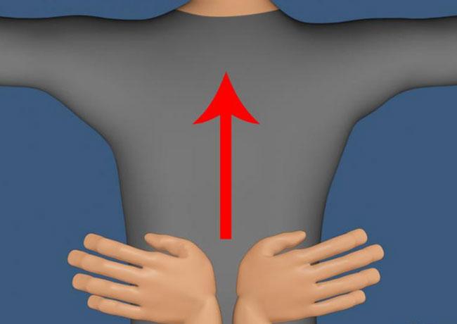 Выдохните, в то время как руки партнера аккуратно давят и одновременно движутся вверх. Руки всегда должны быть плотно прижаты к вашей спине, а не просто скользить по ней.