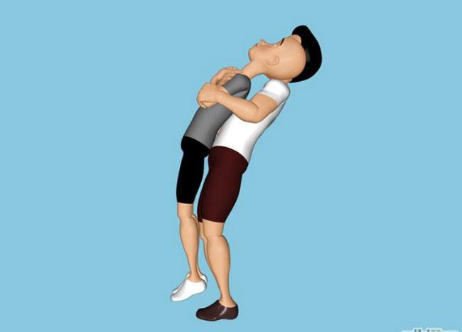 Сделать подъем – со спины- с растяжением. Для такого растяжения требуется два человека. Тот, которому требуется терапия спины, скрещивает руки на груди так, чтобы ладони легли на противоположные плечи. Товарищ сзади подхватывает вас за локти и немного приподнимает от земли с прогибом назад.