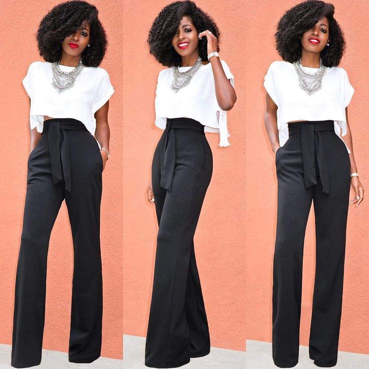 - Ещё одна модная вытягивающая фишка – брюки с высокой талией, подчёркивающие изящество женского силуэта. При этом не стоит увлекаться и “съедать” верхнюю часть корпуса, иначе получится пресловутая “грудь-из-попы”. Длина туловища должна составлять не менее ¼ от общего роста.