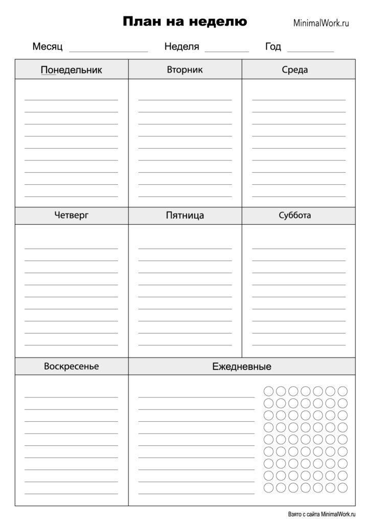 Шаблон планера на неделюСкачать