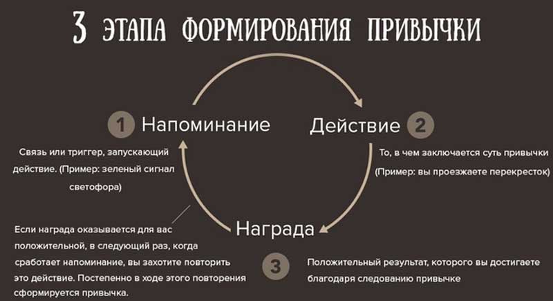 Одним из моих любимых способов выработки привычек является их «надстройка» над уже имеющимися. Это помогает встроить несколько привычек в распорядок дня, и при этом одни привычки выступают в роли триггера для других.