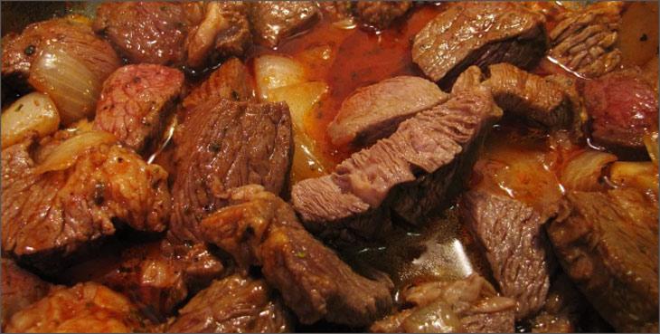 Приготовление: Мясо хорошо промойте, порубите «соломкой», лук и помидор нарежьте кубиками. Чеснок пропустите через чесночницу. Разогрейте сковороду и жарьте мясо на среднем огне до румяной корочки. Затем добавьте лук, помидор и чеснок, жарьте 5-10 минут. В это время смешайте имбирь, соль, перец и уксус. Добавить к мясу и тушить на слабом огне до испарения жидкости. В готовое блюдо добавить зелень. Приятного аппетита!