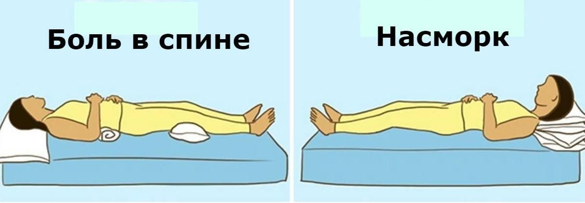 Если мучают боли в спине тоже принять верное положение во время сна.
