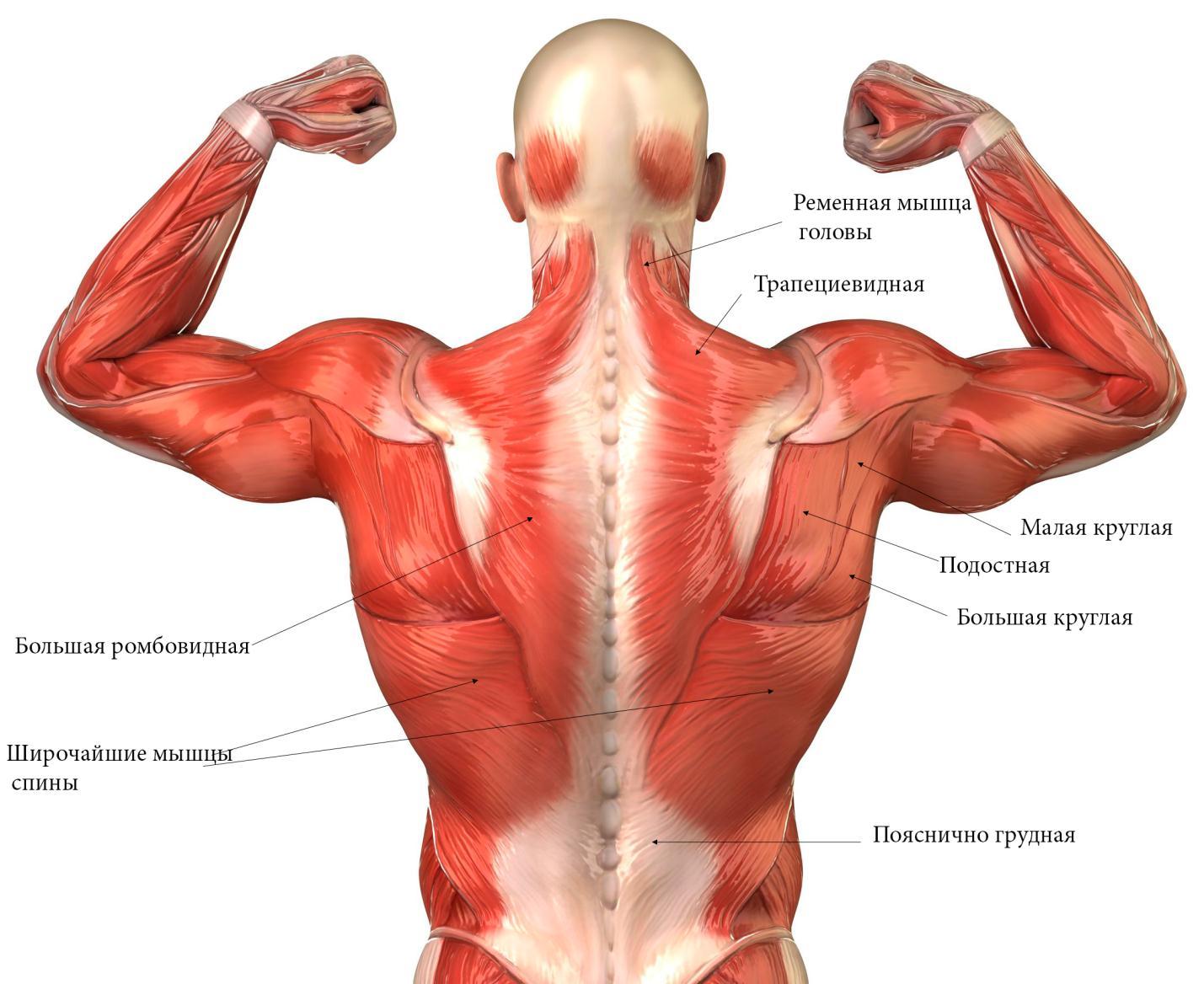 - мышцы грудного отдела спины (малая и большая круглые, а также подостная).