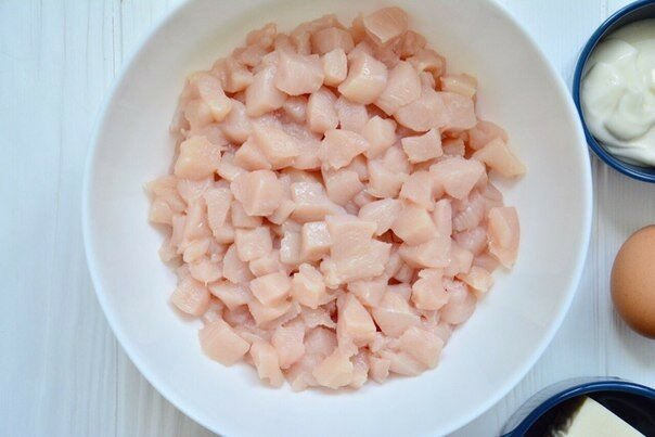 4. В глубокой тарелке соедините филе, яйца, майонез, муку, сыр и укроп. Добавьте соль и перец и тщательно перемешайте.