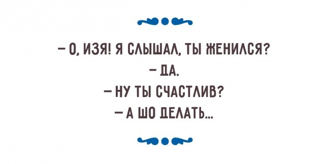 — Молодой человек! Вы меня спросили, и я вам таки скажу. Вы женаты?