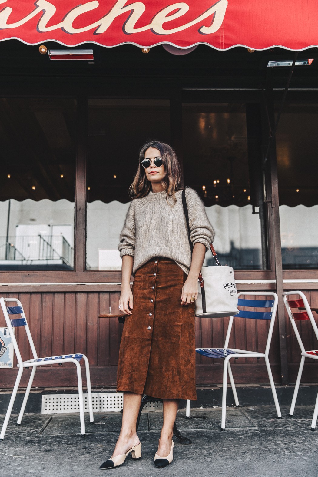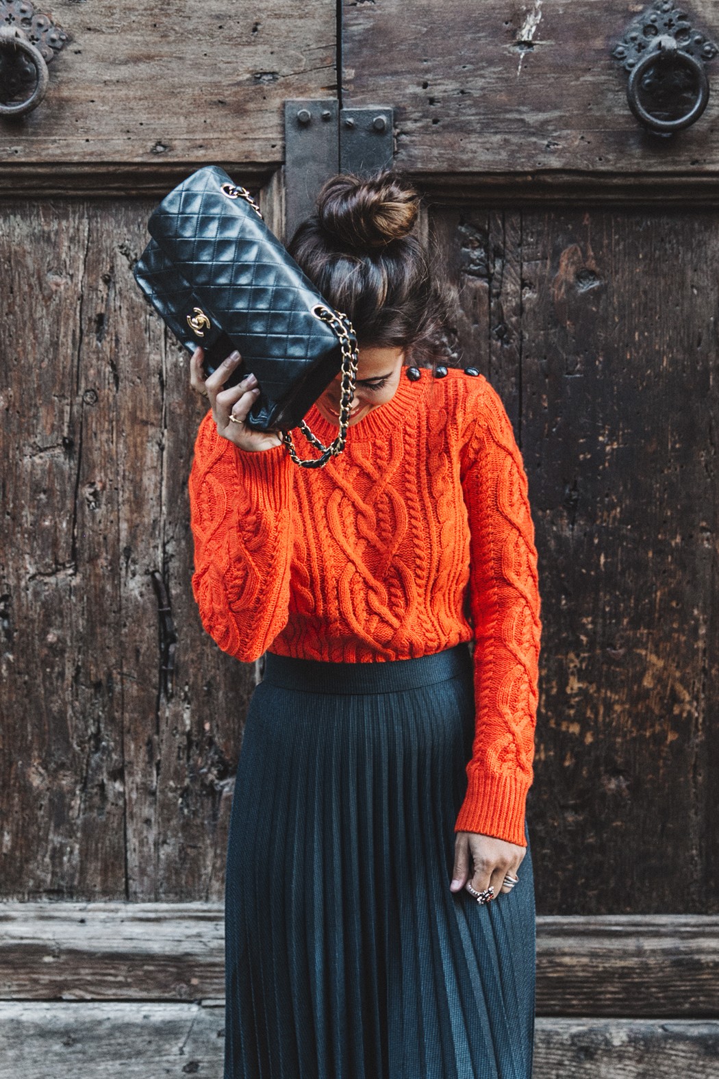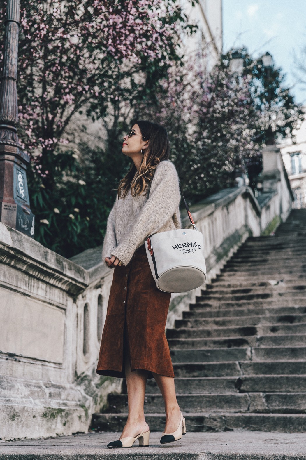 Джемпер: Bimba & Lola / Юбка : Zara / Сумка: Hermès x Vestiaire Collective / Туфли: Chanel Vintage