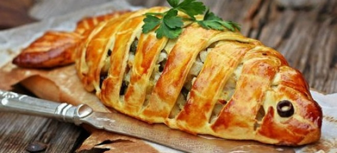 Пирог с рыбой из слоеного теста