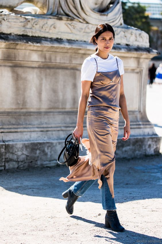 Сама по себе идея сочетать вещи из абсолютно разных категорий (например, джинсы и вечернее шелковое платье на бретелях) не так уж и нова – еще два года назад, в 2014-ом, этот тренд заявил о себе так же громко, как backwards shirt этим летом. В прошлом году страсти на этот счет слегка поутихли, а в этом году во время показов осень-зима 2016 блогеры, редакторы и it-girls снова вышли в свет в сетах «платье со штанами». Вот как это объясняет обозреватель The GuardianJess Cartner-Morley