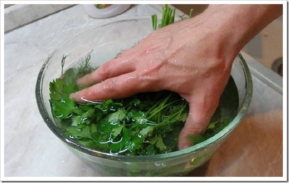10. При мытье зелени не сливайте воду, а достаньте из ёмкости с жидкостью траву. Тогда грязь останется в воде.
