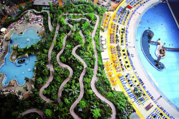 Жители Берлина любят плавать. В городе полно общественных бассейнов, а в Бранденбурге много озер с песчаными пляжами, куда летом съезжаются местные жители и туристы. Правда одно место выделяется среди других. Аквапарк «Тропические острова» считается самой поразительной достопримечательностью Европы, который находится в 60км к югу от немецкой столицы: прямо в сердце северной Европы. Он находится в бывшем ангаре для дирижаблей, который поражает своим размером. Здесь есть все, что ассоциируется с тропиками: пальмы, экзотические птицы, пляж, пиратский корабль, а также водные горки, шезлонги, беседки, украшенные цветами, огромное спа, сувенирные лавки и даже небольшой нудистский пляж.
