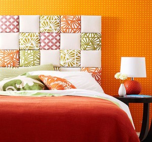 Мозаика из ткани в качестве изголовья.