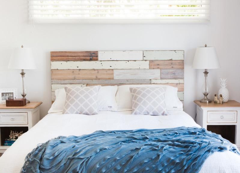 Когда дело доходит до использования дерева, из которого можно придумать много вариантов для изголовья для кровати своими руками. Если у Вас нет старого дерева, то его можно состарить самостоятельно.Чтобы создать более изящный, состаренный вид изголовья из старого дерева, нужно немного нанести грязи на доски и слегка обелить, чтобы они немного впитали грязь.