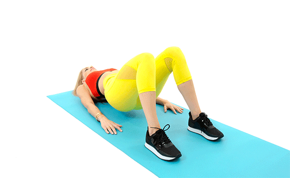 Ляг на спину, положи руки вдоль тела, начинай медленно поднимать таз и сжимать ягодицы. Следи, чтобы грудная клетка при этом оставалась на полу. Сделай упражнение не меньше 25 раз.