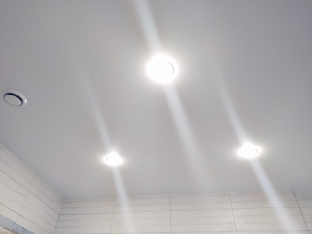 - Монтирование системы вентиляции и потолка. Вентиляционный клапан встроен прямо в натяжной потолок. На этот этап вызывали бригаду, у нас самих опыта работы с натяжными потолками нет. Стоимость работ и материала 5500р, тут экономить не на чем;