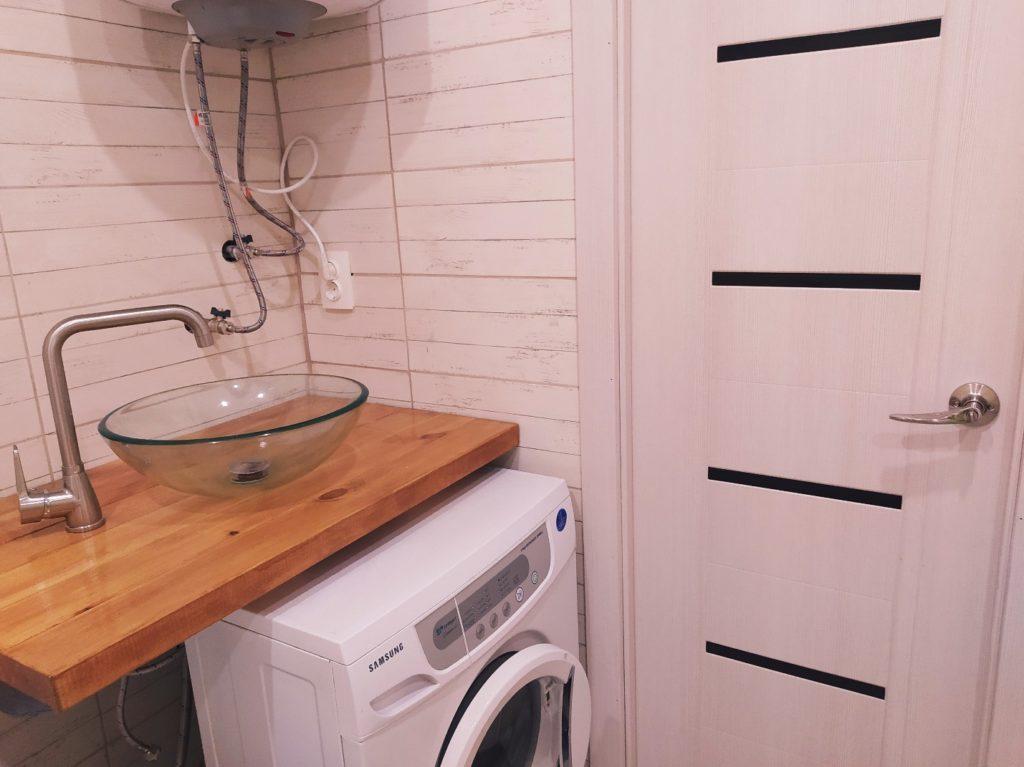 Когда встал вопрос об отделке ванной, задумались, а почему бы не забабахать минималистичный лофт?