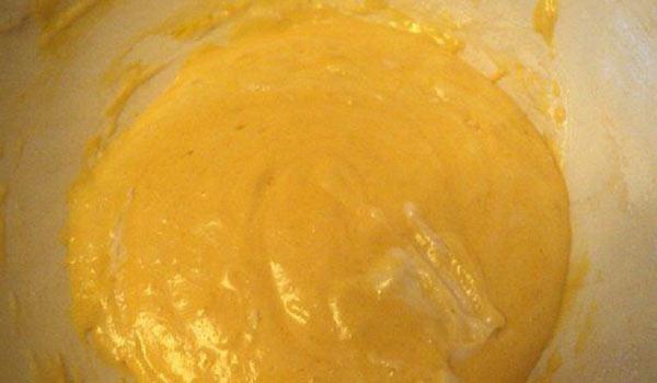 4. Отдельно взбиваем желтки и добавляем их в одну из частей теста. Туда же добавляем немного муки (1 ст. л.).