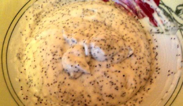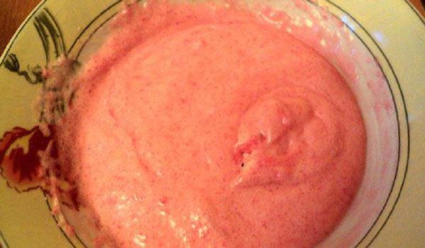 11. Далее на нужно приготовить своеобразную начинку: растворяем вишневое желе в стакане воды и смешиваем с творогом. Осторожно взбиваем смесь миксером.