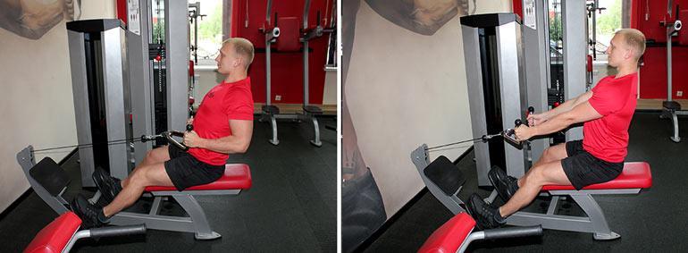 Какой должна быть правильная тренировка с применением тяги сидя? Для начала – полная разминка всего тела, даже ног. После этого лучше перейти на подтягивания или вертикальный блок, как замену. Только потом стоит браться за тягу, когда мышцы достаточно разогреты и вы можете на максимум выкладываться в тяжелых силовых подходах. Вся тренировка спины после разминки и кардио будет выглядеть так: